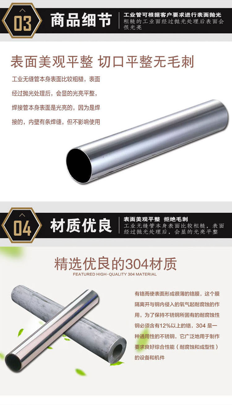 產(chǎn)品規(guī)格:12.7*12.7mm-400*400mm,壁厚0.6mm-20mm,不銹鋼圓管一般為6*1-630*28,規(guī)格有4分、6分、1寸、1.2寸、1.5寸、2寸、2.5寸、3寸、4寸、5寸、6寸、8寸、102、108、127、133、139、159、168、177、194、219、273、325、377、426、530、630等。不銹鋼異型管一般多是指方矩型鋼管、三角鋼管、六角鋼管、不銹鋼花紋管、U型管、D型管、水彎等。