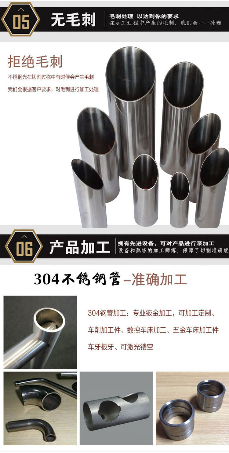 304薄壁不銹鋼管是除了圓管以外的其他截面形狀的鋼管的總稱, 有焊接異型管和無縫異型管。 因為材質(zhì)的關(guān)系,不銹鋼異型管一般為304以上材質(zhì)為多,200、201材質(zhì)硬度強風(fēng),成型難度加大。